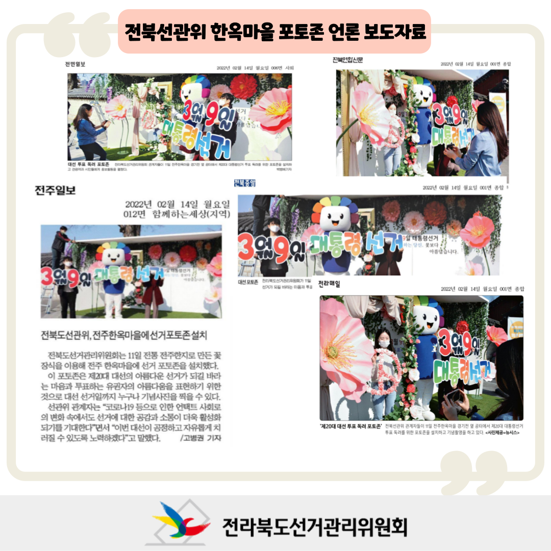 전북선관위 한옥마을 포토존 언론 보도자료
