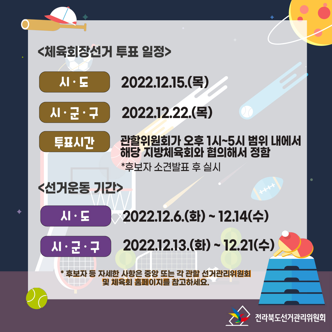 *후보자 등 자세한 사항은 중앙 또는 각 관할 선거관리위원회 및 체육회 홈페이지를 참고하세요.
