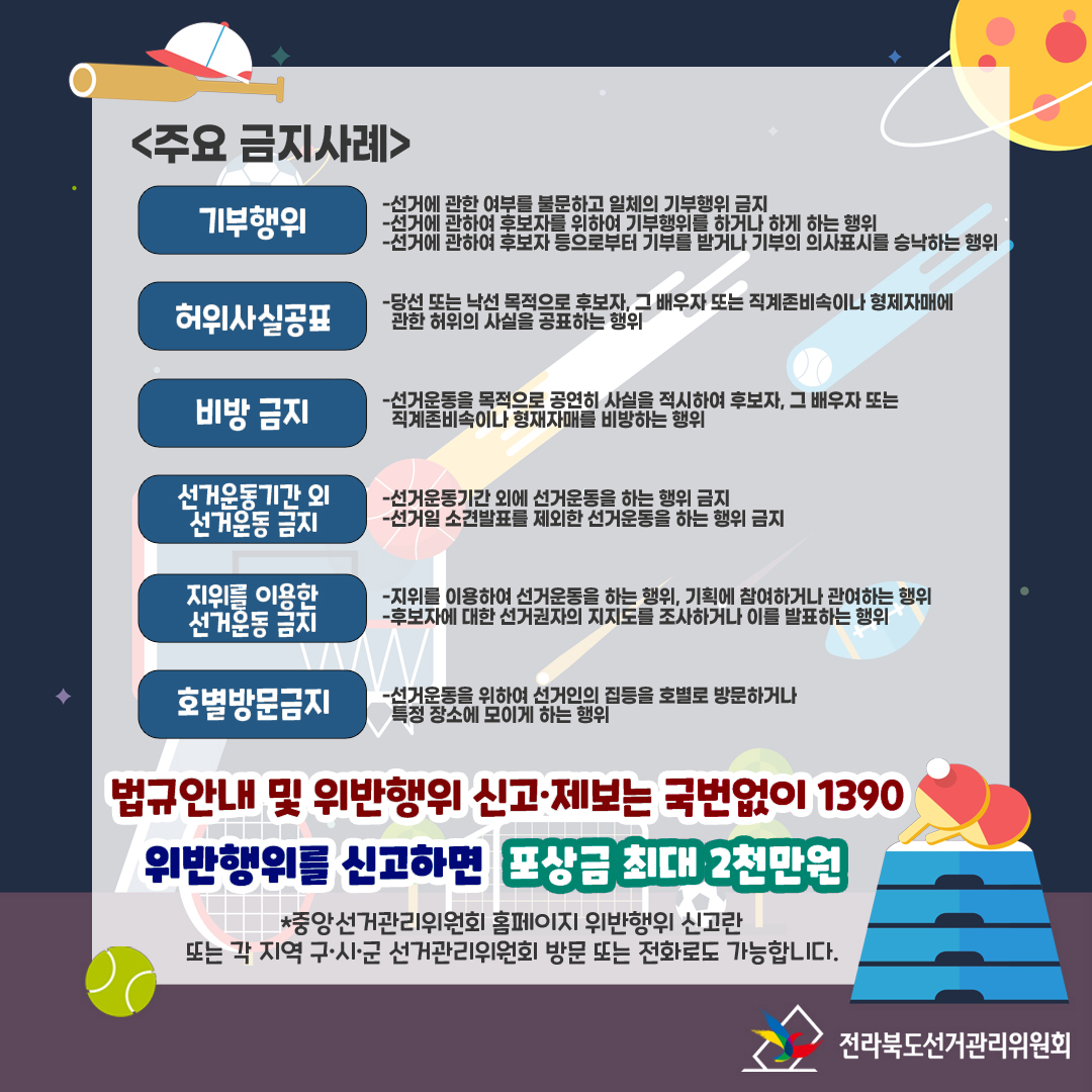 *중앙선거관리위원회 홈페이지 위반행위 신고란 또는 각 지역 구·시·군 선거관리위원회 방문 또는 전화로도 가능합니다.