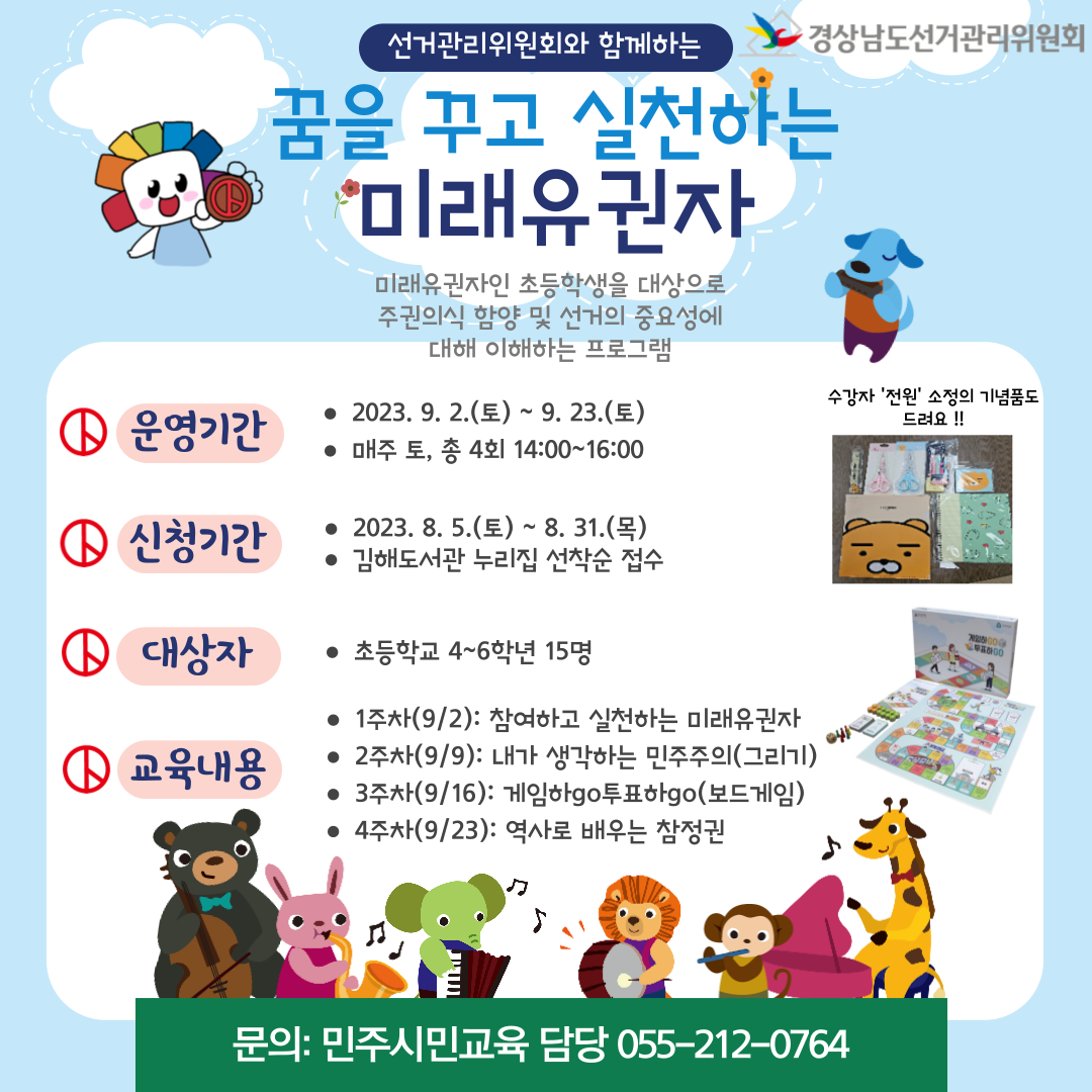 - 신청기간: 2023. 8. 5.(토) ~ 8. 31.(목) , 김해도서관 누리집 선착순 접수