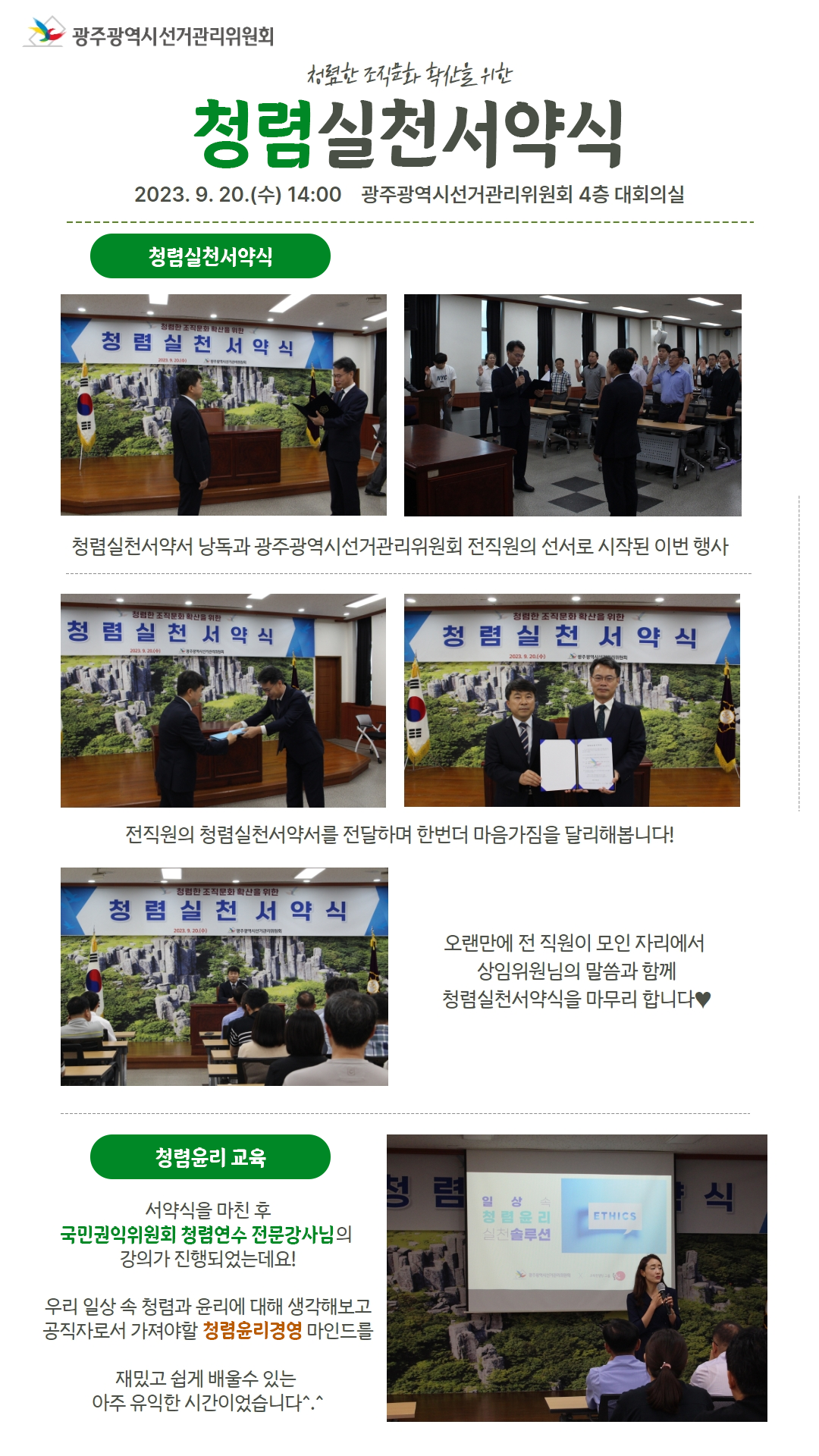 청렴실천서약서 낭독과 광주광역시선거관리위원회 전직원의 선서로 시작된 이번 행사