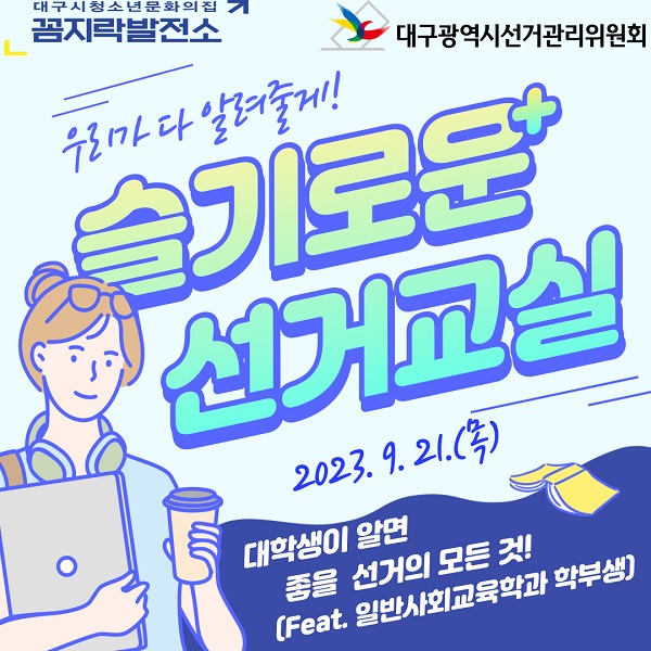 대구광역시선거관리위원회(053-767-2584)에서 제작한 선거홍보관 활성화를 위한 슬기로운 선거교실(Feat. 일반사회교육학과 학부생) 저작물은 "공공누리" 출처표시-상업적 이용금지-변경금지 조건에 따라 이용할 수 있습니다. 자세한 내용은 [저작권정책]을 확인하십시오.