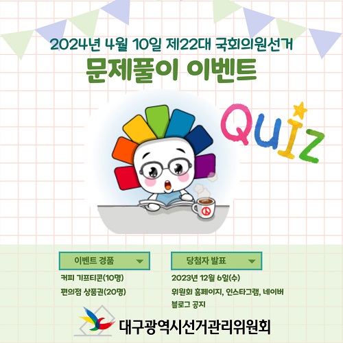 안녕하세요? 대구시선거관리위원회의 세 번째 문제풀이 이벤트입니다.