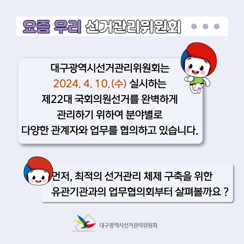 대구광역시선거관리위원회는 2024. 4. 10.(수) 실시하는 제22대 국회의원선거를 완벽하게 관리하기 위하여