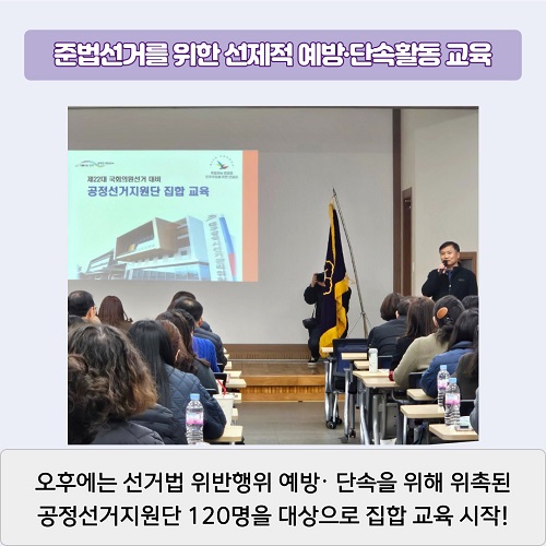 오후에는 선거법 위반행위 예방?단속을 위해 위촉된 공정선거지원단 120명을 대상으로 집합 교육 시작!