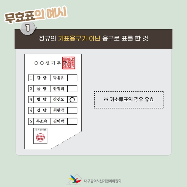 무효표의 예시1. 정규의 기표용구가 아닌 용구로 표를 한 것