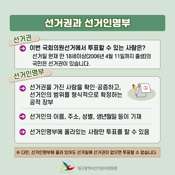※ 다만, 선거인명부에 올라 있어도 선거일에 선거권이 없으면 투표할 수 없습니다.