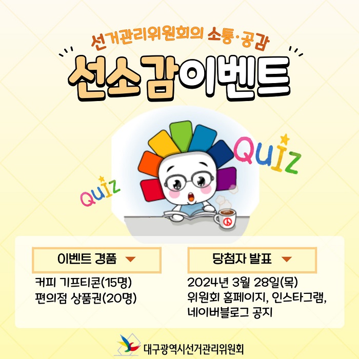 안녕하세요? 대구시선거관리위원회의 소통?공감을 담당하고 있는 선소감이벤트입니다.